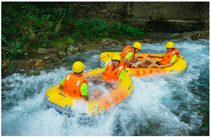 全程4.3公里原生態漂流河道,128處激流落差讓游客在浪尖上盡情飛舞90分鐘,236處各式彎道演繹“水上達喀爾”極速漂移感覺;得天獨厚的自然山水資源,被指定為國家自然水域漂流大賽主賽場。
