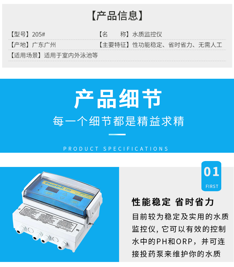 人工投藥藥量不穩(wěn)定,含氯/溴不足,細(xì)菌,藻類容易滋生。使用全自動監(jiān)控儀,每天耗電不到1度,無需人工,自動控制水質(zhì),商家游泳池理想匹配產(chǎn)品。